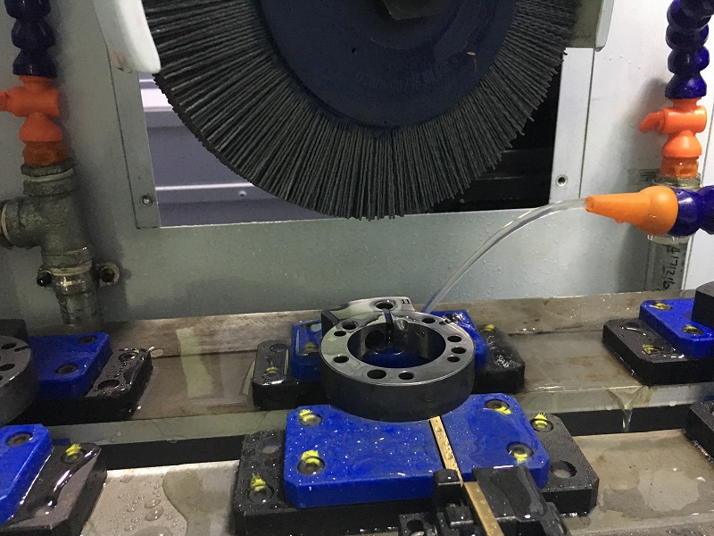 采用湿式去毛刺,通过水溶性切削液对工件进行冷却清洗;